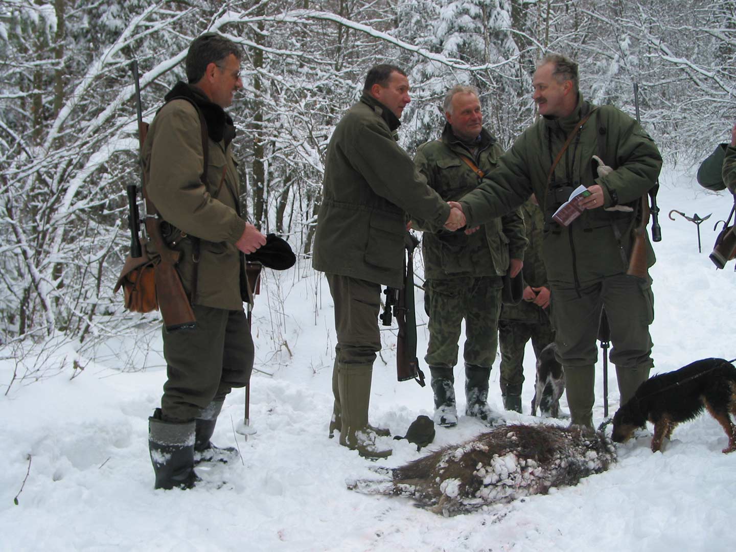 Polowanie zbiorowe na dziki w Kole łowieckim Darz Bór Kraków - 31 grudnia 2005.