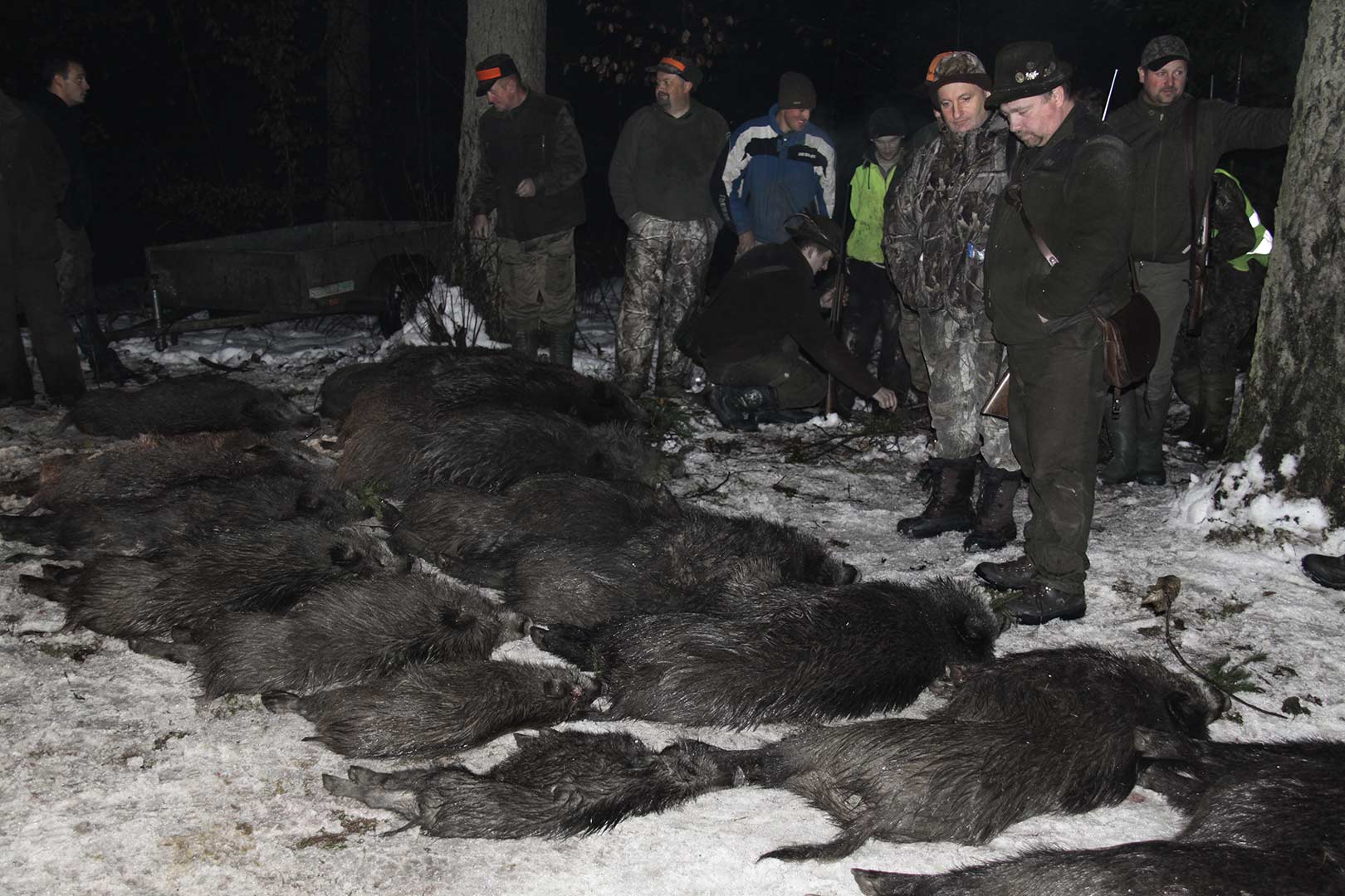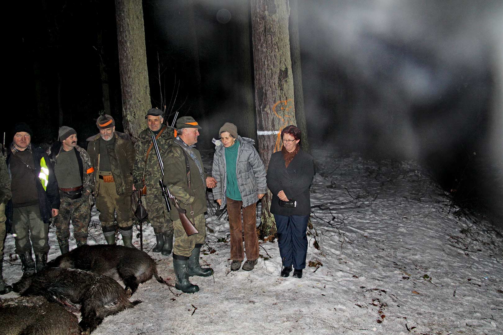 Na pokazanym poniżej polowaniu w Rudniku (grudzień 2012), po pozyskaniu ponad 20 dzików, zadzwoniliśmy do Pani Sołtys Rudnika, żeby przyjechała i zobaczyła ile myśliwi pozyskują dzików (przyjechała razem ze swoją poprzedniczką - zdjęcie nr. 5).