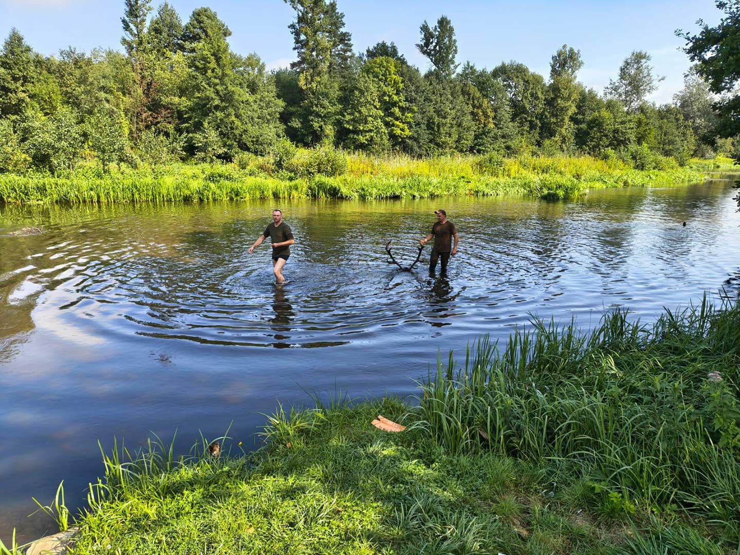 Kolega Krzysztof i Kuba dochodzili go przez trzy godziny i doszli do rzeczki - granicy obwodu. Dalsze szukanie zostawiają na jutro. Jutro też ma być drugi kolega z psem z Nadleśnictwa Józefów, który jest też świetnym tropowcem. Niestety całą noc pada deszcz. Drugi pies, który został puszczony tą samą drogą od zestrzału, dochodzi do tego samego miejsca w rzeczce granicznej i gubi trop. Przewodnik przenosi psa na drugą stronę rzeczki (po pas w wodzie), ale pies nie podejmuje tropu - 300 m w lewo, 300 w prawo i nic.