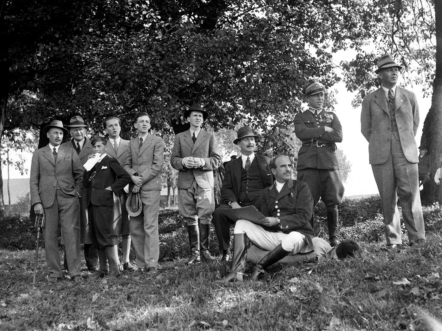 Od prawej: Tytus Dunin, major Emil Słatyński, major Eryk Pfann, Marian Rudziński, Oskar Rudziński, Władysław (Dyk) Rudziński, Andrzej Rudziński, Maciej Rudziński (na czarno), hrabia Romer z Inwałd, Edward Rudziński.