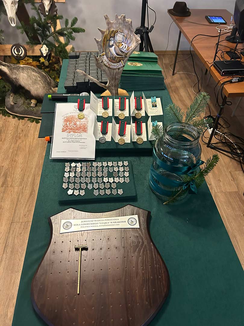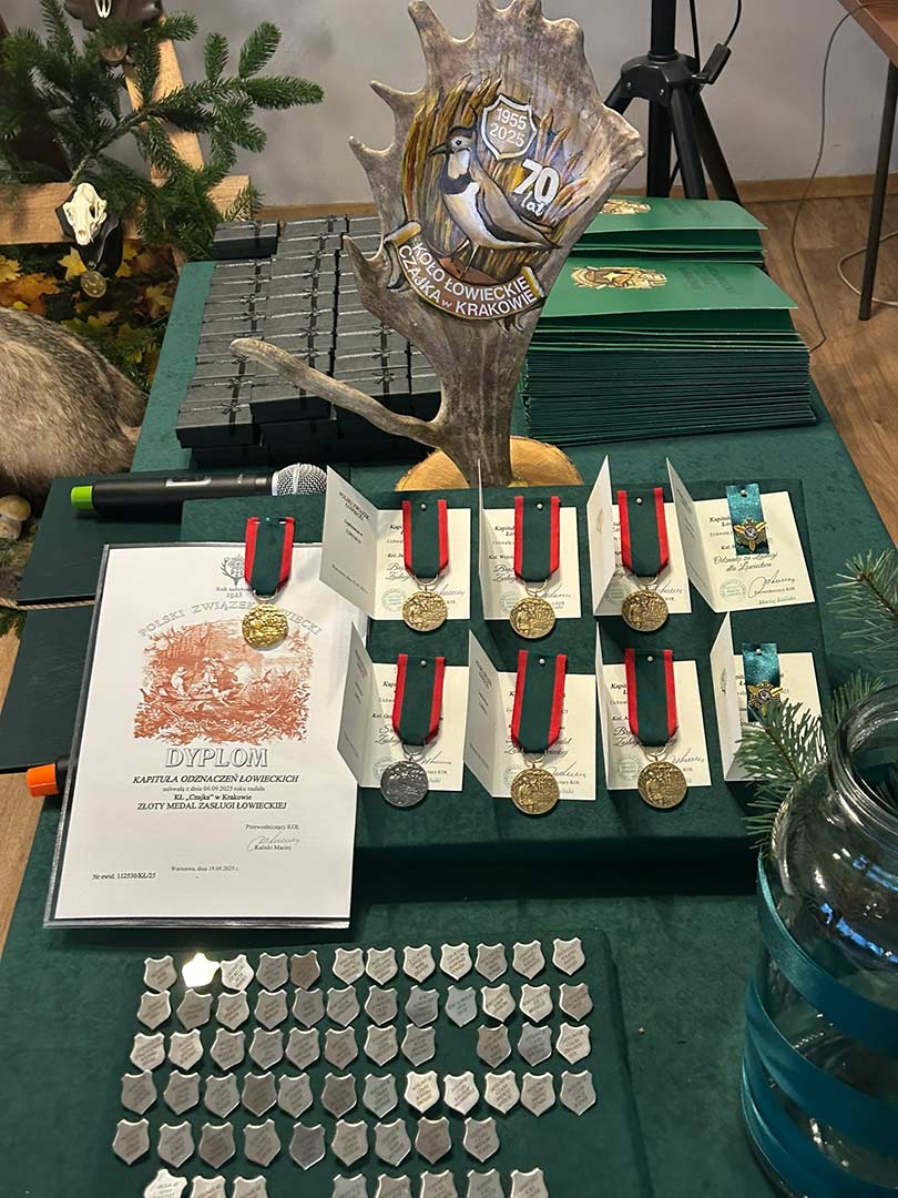 Koło zostało oznaczone złotym medalem zasługi Łowieckiej, a kilku kolegów medalami łowieckimi.