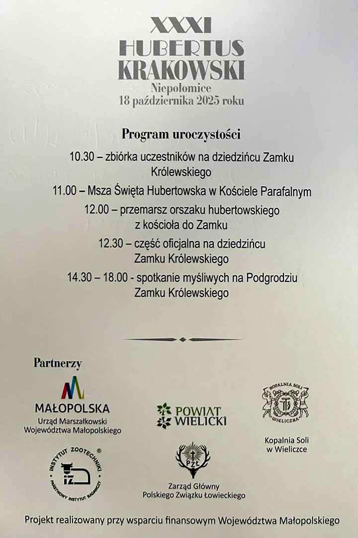 XXXI Hubertus Krakowski - Niepołomice, 18.10.2025. - zaproszenie