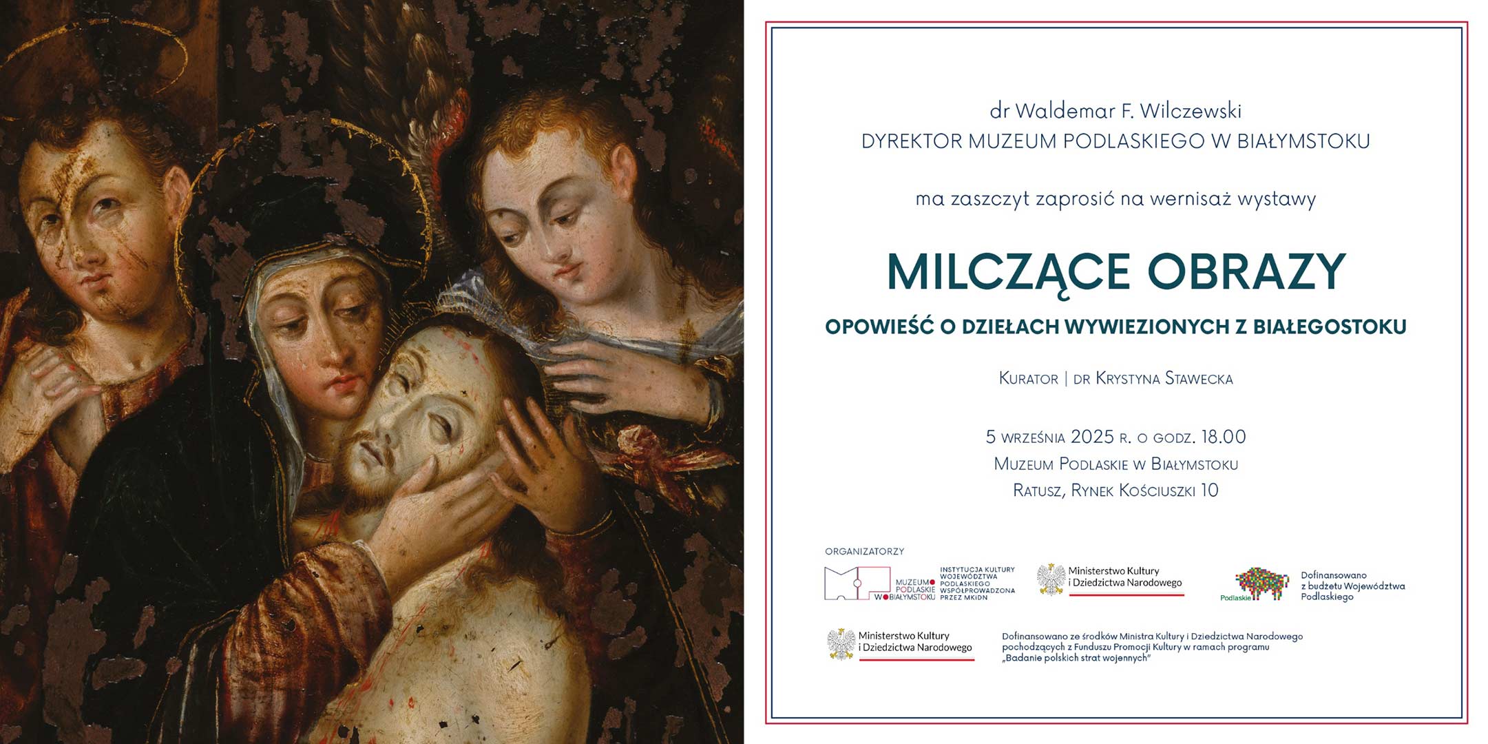 Zaproszenie na wystawę Milczące obrazy. Opowieść o dziełach wywiezionych z Białegostoku.