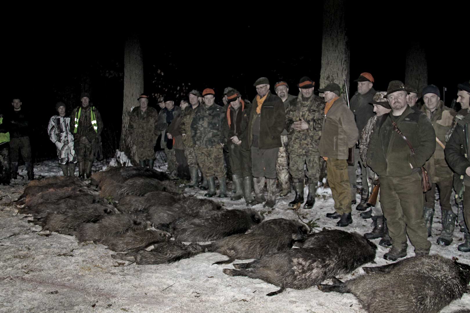 Na pokazanym poniżej polowaniu w Rudniku (grudzień 2012), po pozyskaniu ponad 20 dzików, zadzwoniliśmy do Pani Sołtys Rudnika, żeby przyjechała i zobaczyła ile myśliwi pozyskują dzików (przyjechała razem ze swoją poprzedniczką - zdjęcie nr. 5).