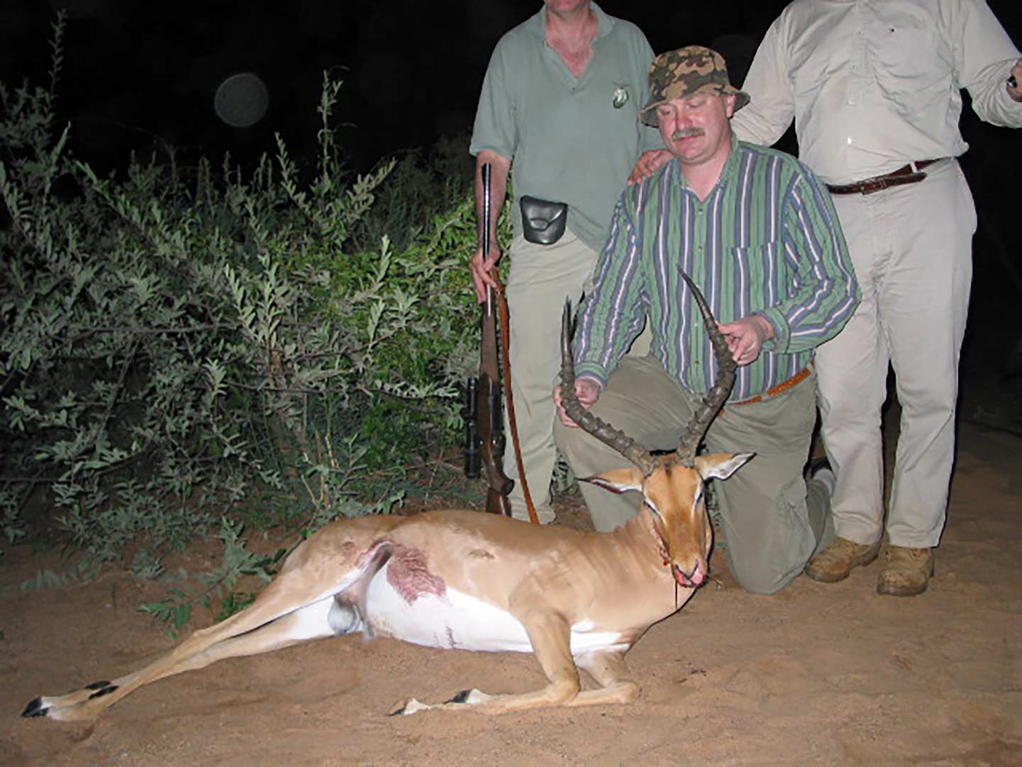 Na miejsce polowania przyjechał przed zachodem słońca, po przejechaniu około 1000 km. Tam czekali na niego myśliwi zawodowi.