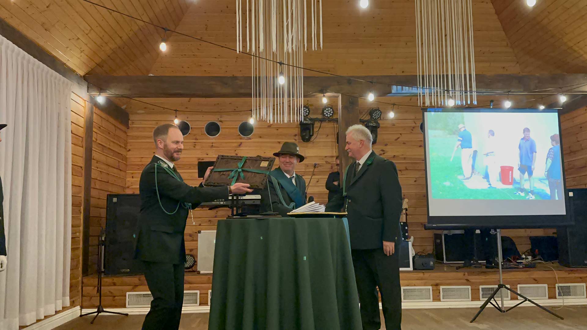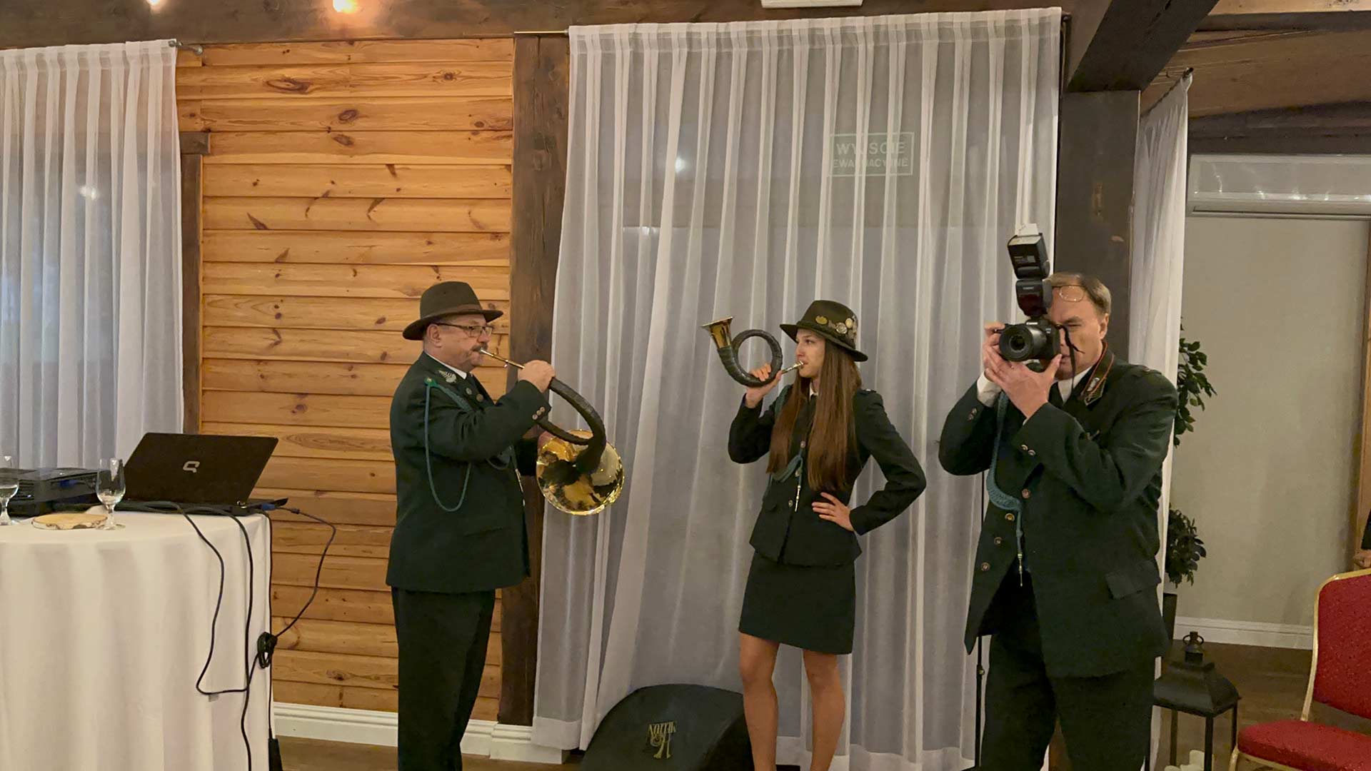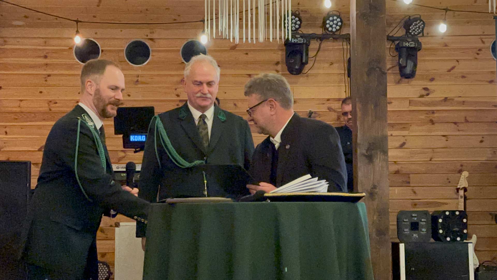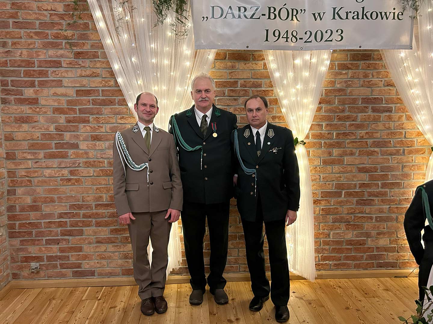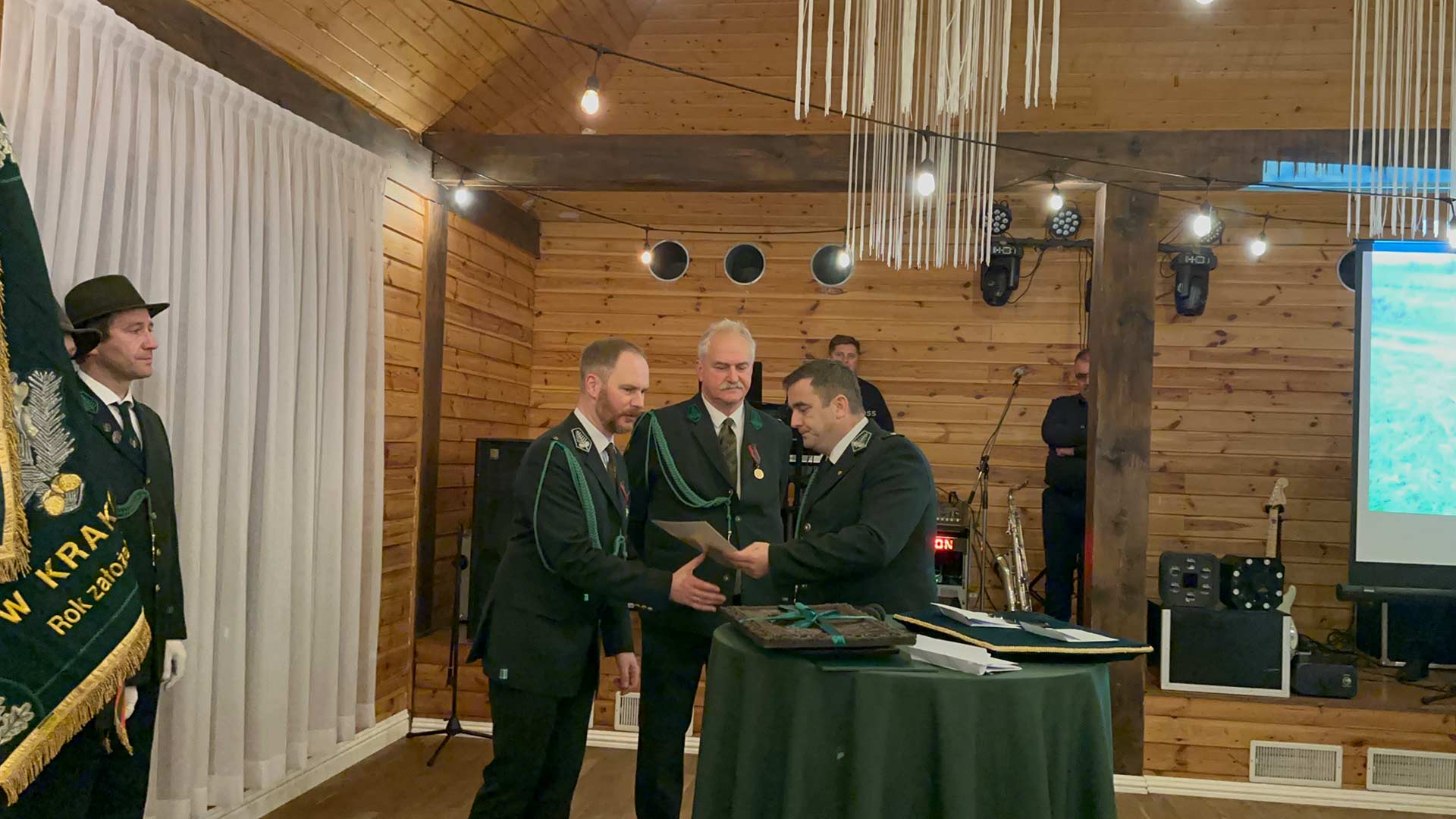 Prezes Koła Piotr Ostrowski, Łowczy Koła Adam Benedykt Bisping wraz z Prezesem Koła Łowieckiego jarząbek Kraków Wiktorem Lenarczykiem.