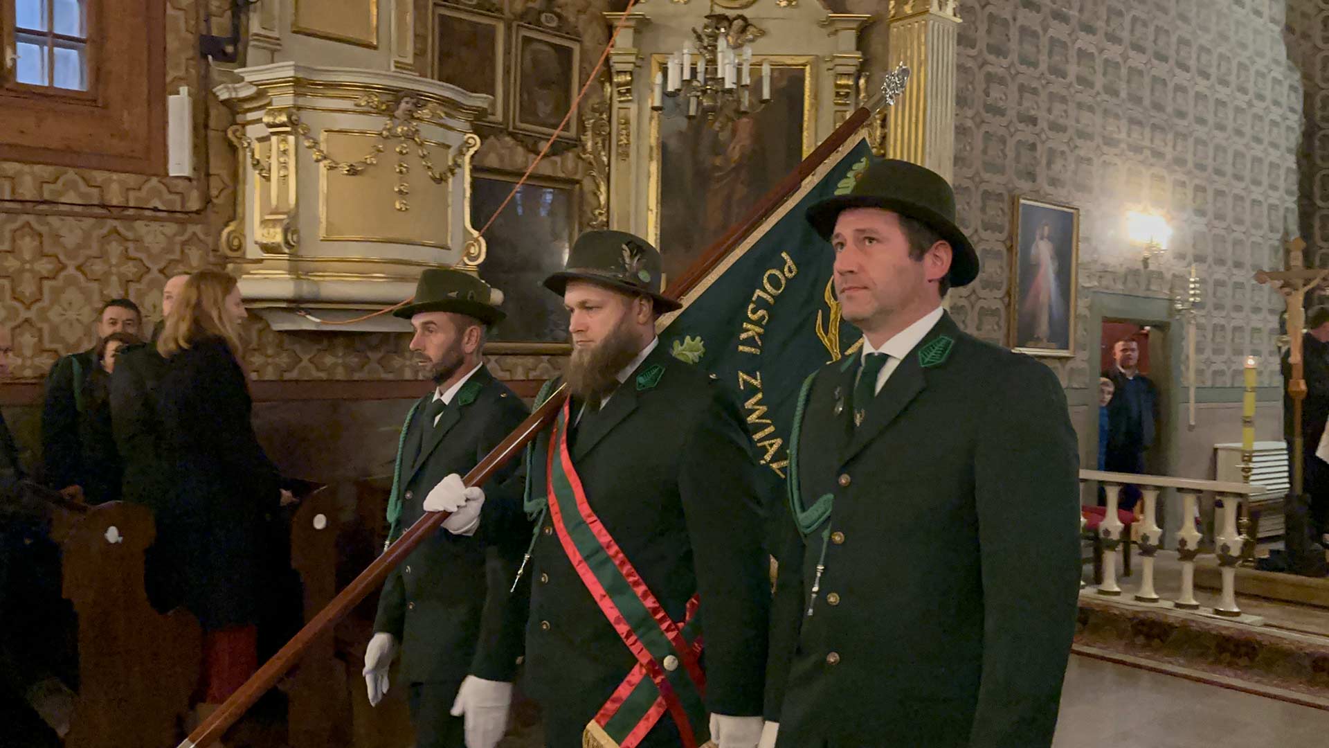 Poczty sztandarowe Koła Łowieckiego Darz Bór w Krakowie oraz Koła Łowieckiego Sokół Łętkowice.