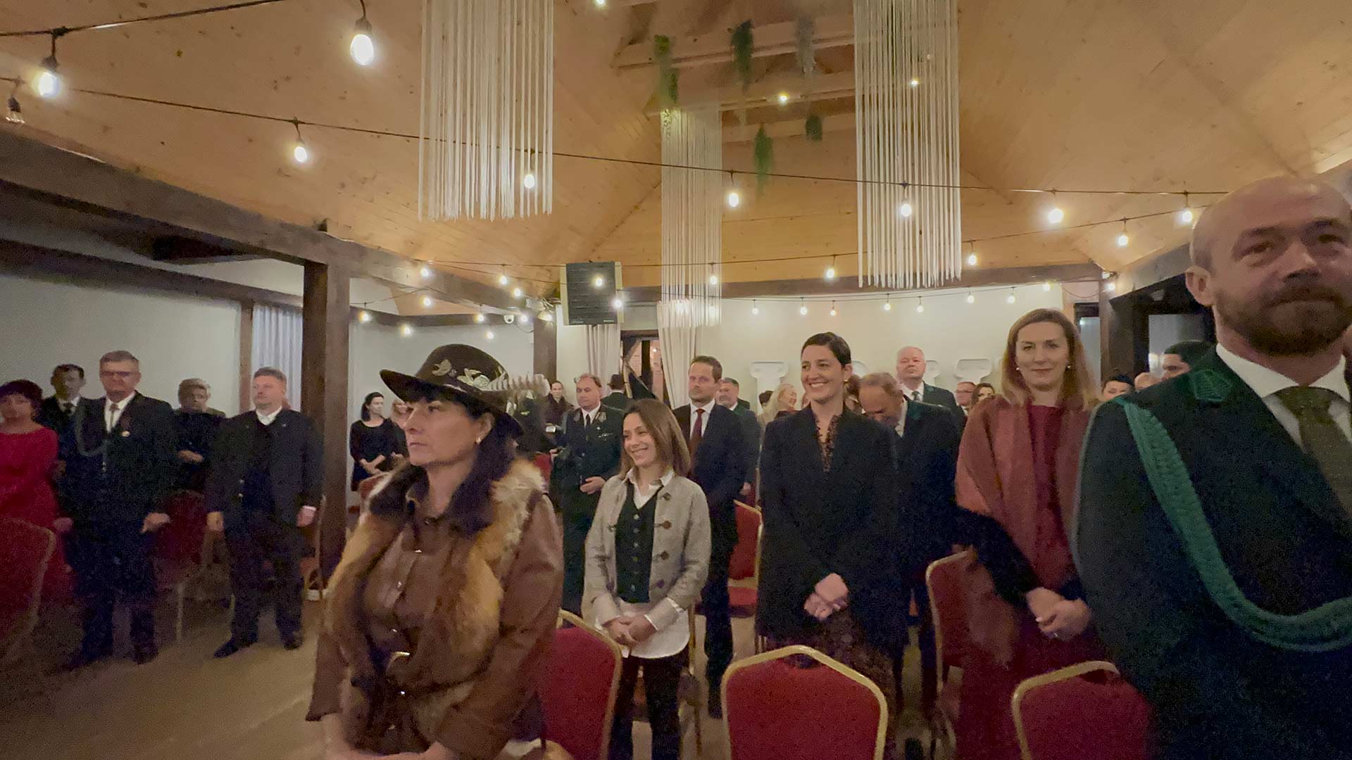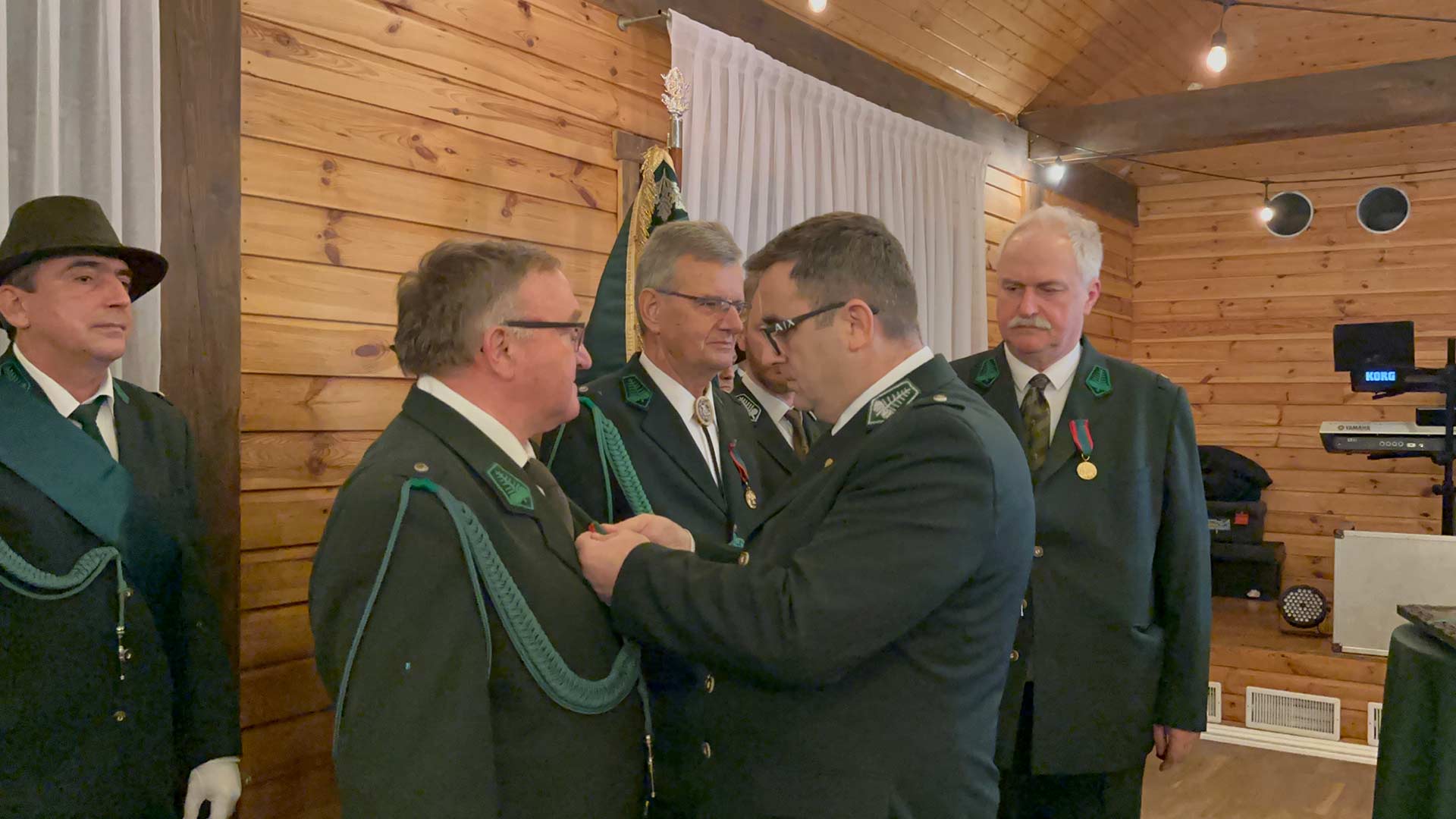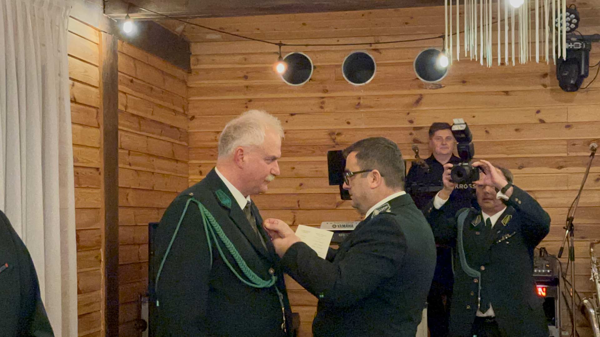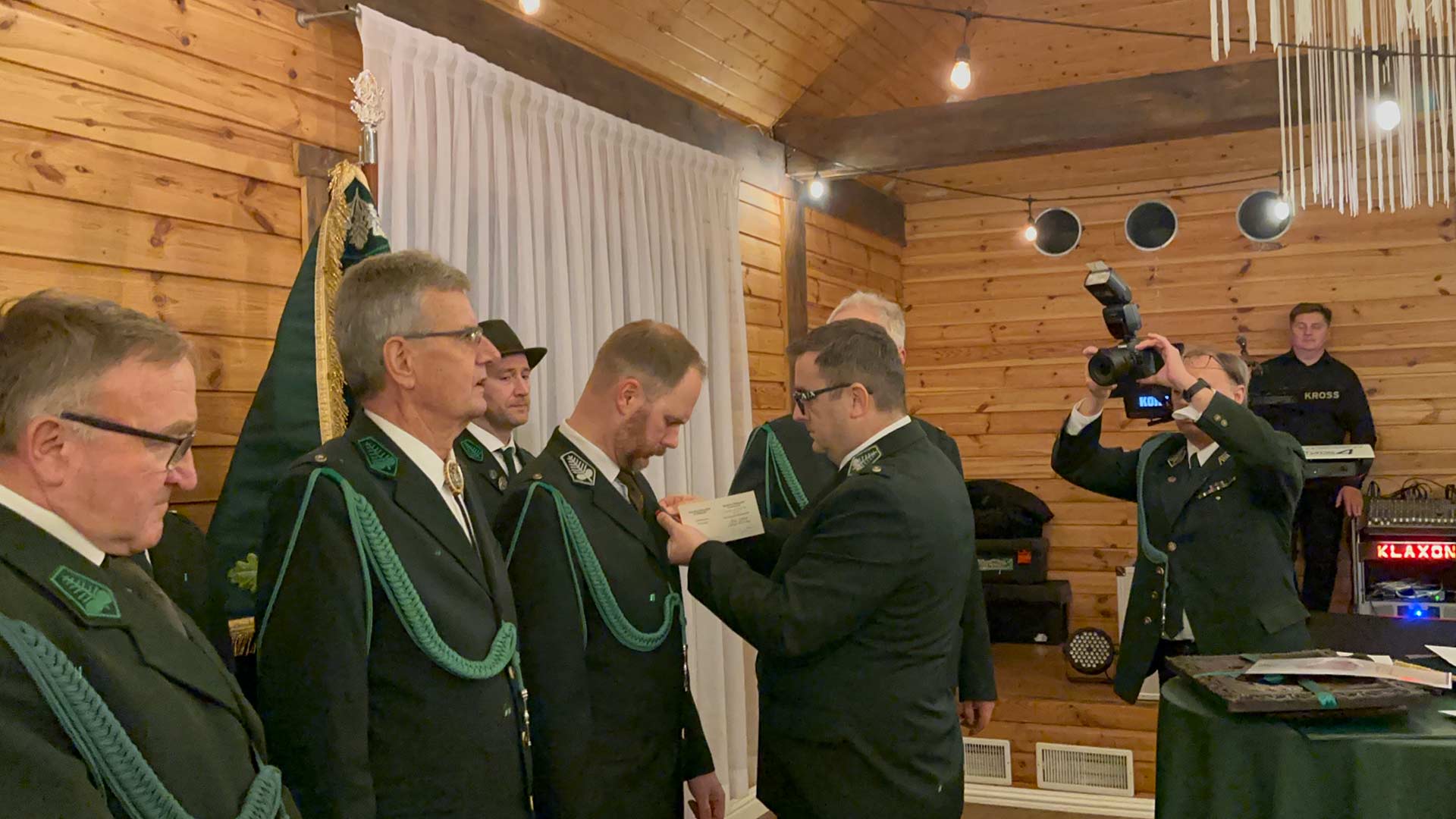 Dekorowanie złotymi medalami za zasługi dla łowiectwa kol. Adama Benedykta Bisping, Stanisława Chmielewskiego, Piotra Ostrowskiego oraz Bronisława Sudera.